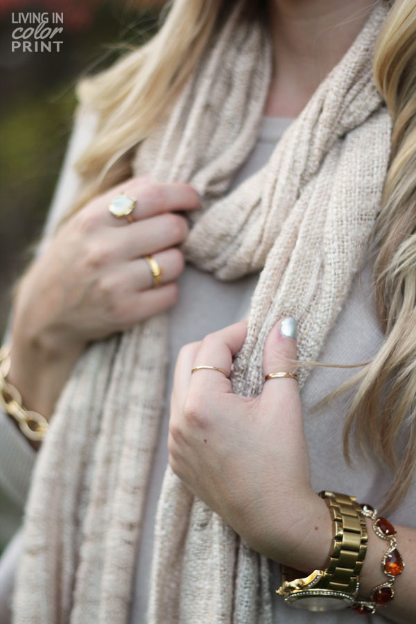 Denim: c/o MiH | Boots: Steve Madden c/o LuLus.com | Sweater: {old, similar & identical} Bag: Aldo {similar} | White Pearl/Gold Ring & Cognac Bracelet: c/o Kendra Scott | Scarf: A&F {old, similar} | Sunnies: Steve Madden | Lips: c/o Tom Ford ‘bruised plum‘