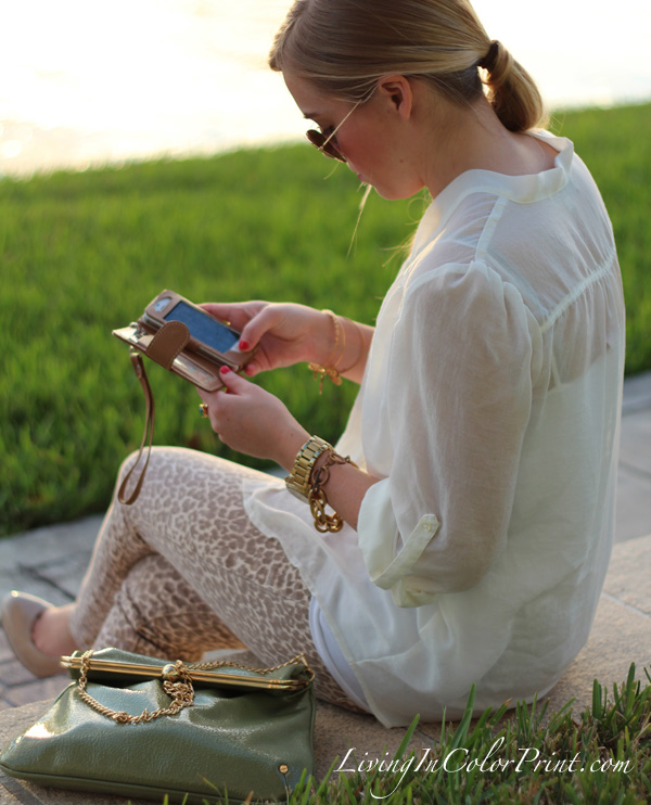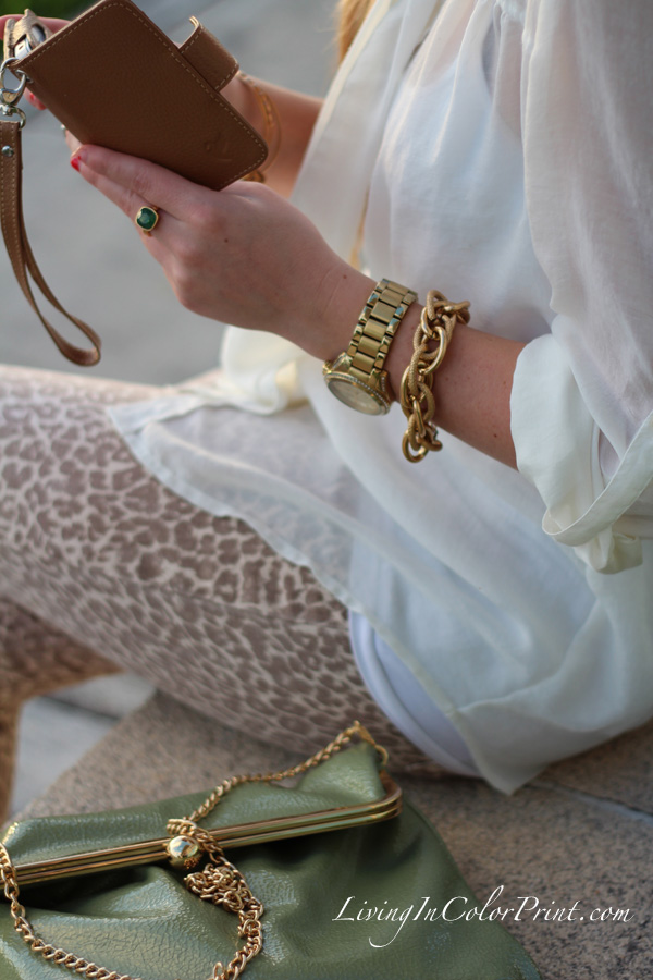 Loaded with some gold accessories.and a handy cell phone wristlet by BellaVita, you’ve got yourself the perfect day-look.