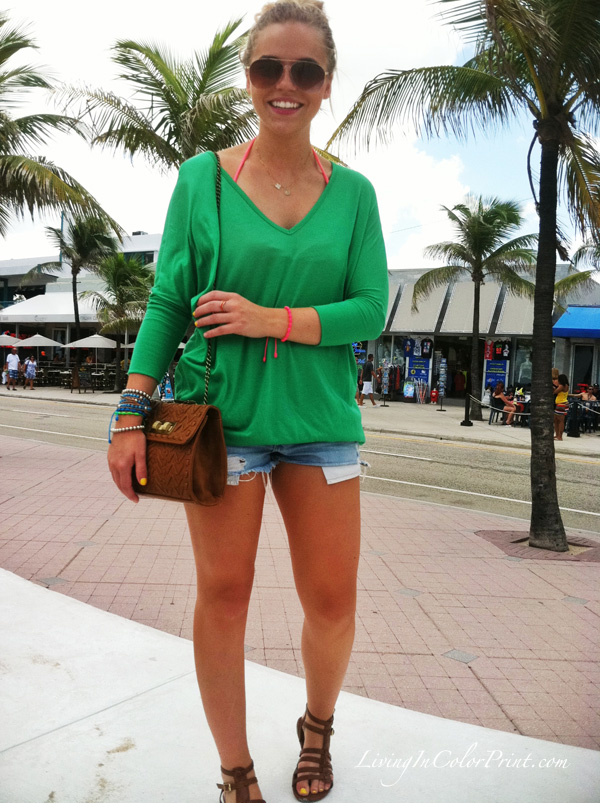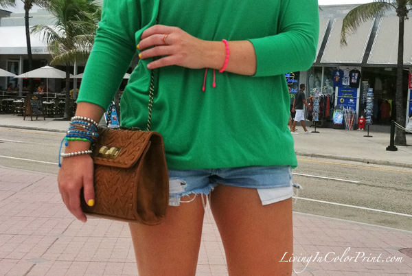 Keeping this outfit post short and sweet. Here’s a little peek at my casual weekend style. I was headed to the beach for the afternoon {before an unexpected monsoon hit the coast and I was soaked} for a little R&R after my Vegas excursion. Cutoffs are one of my go-to pieces for beach attire, paired with a comfy shirt, waterproof arm candy, and cognac accents and you’ve got yourself a uber casual look to hit the sand running.