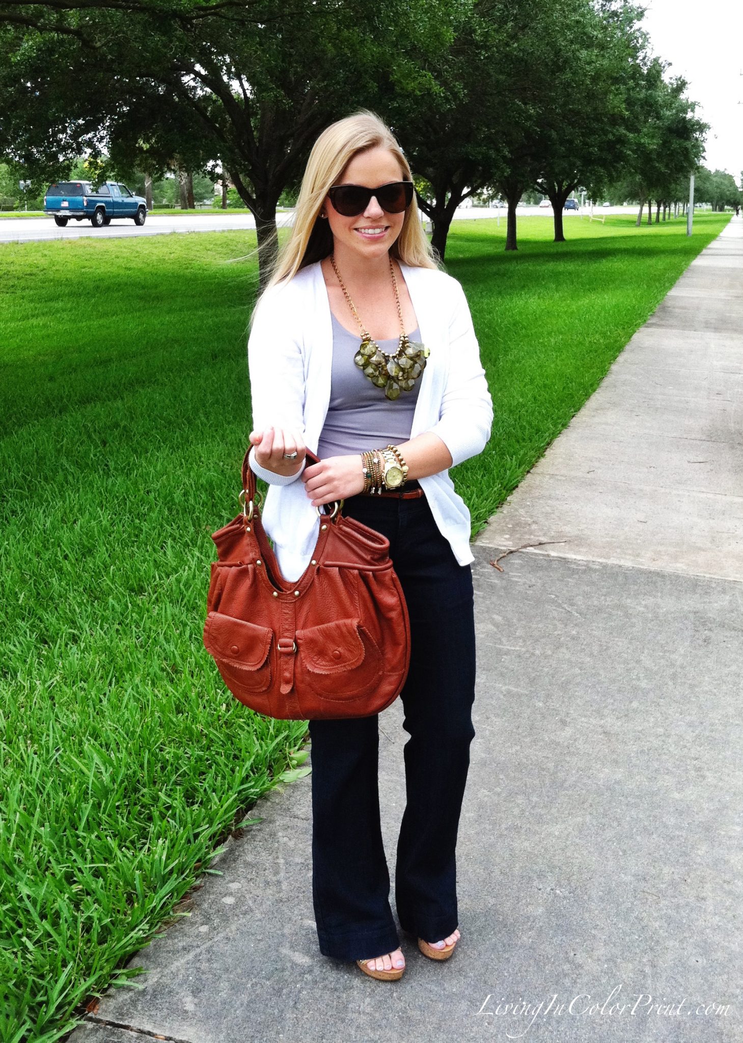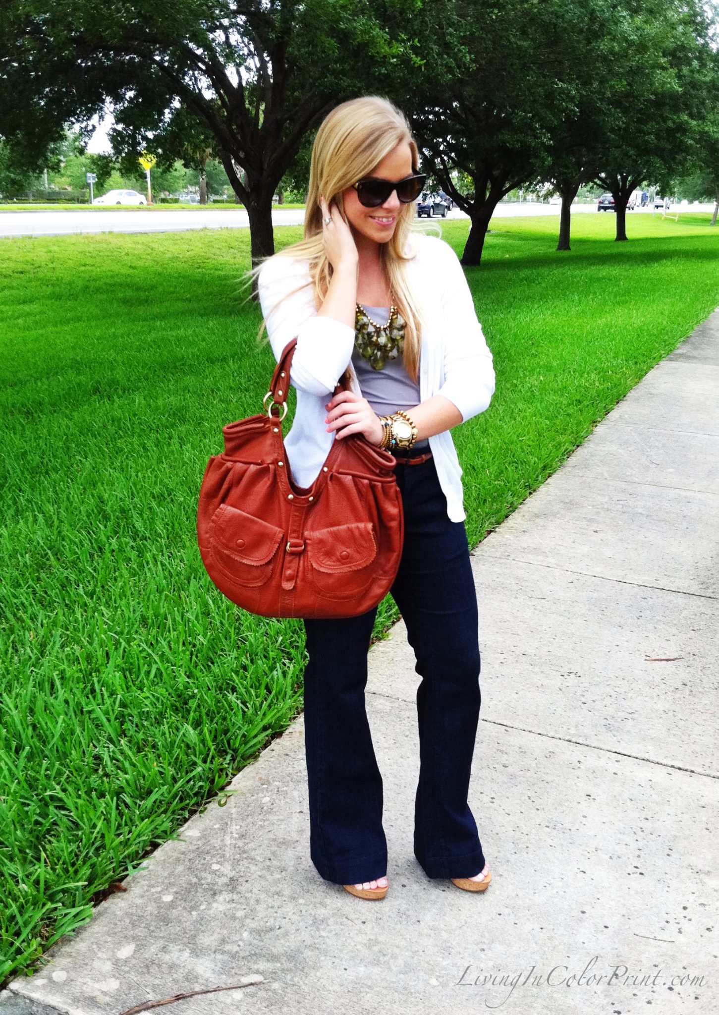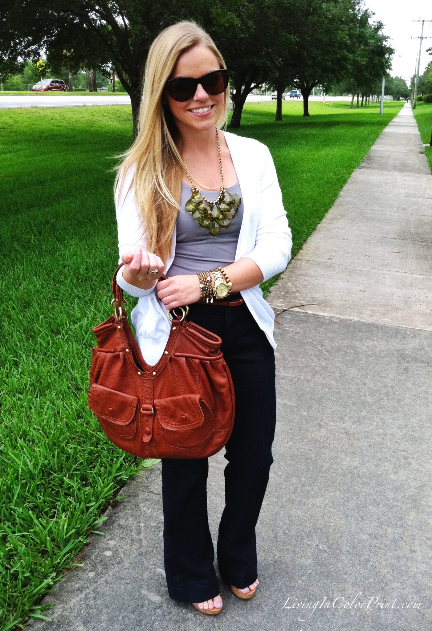 Wide Leg Pants: LOFT // Cardigan: Old Navy // Shirt: Target // Wedges: Steve Madden // Purse: Steve Madden // Arm Candy: c/o CRE // Necklace: Random // Sunnies: Charming Charlie