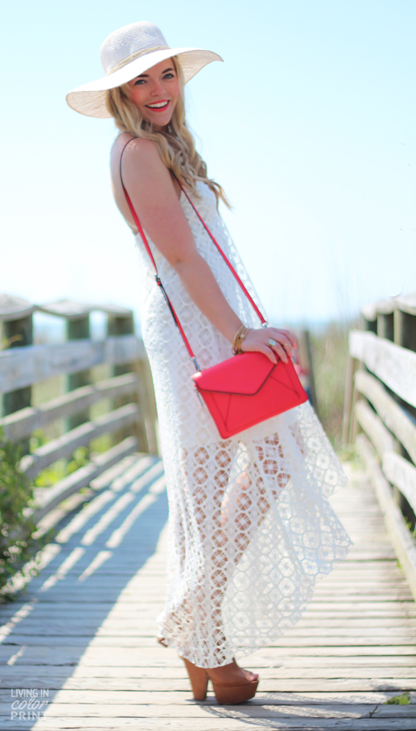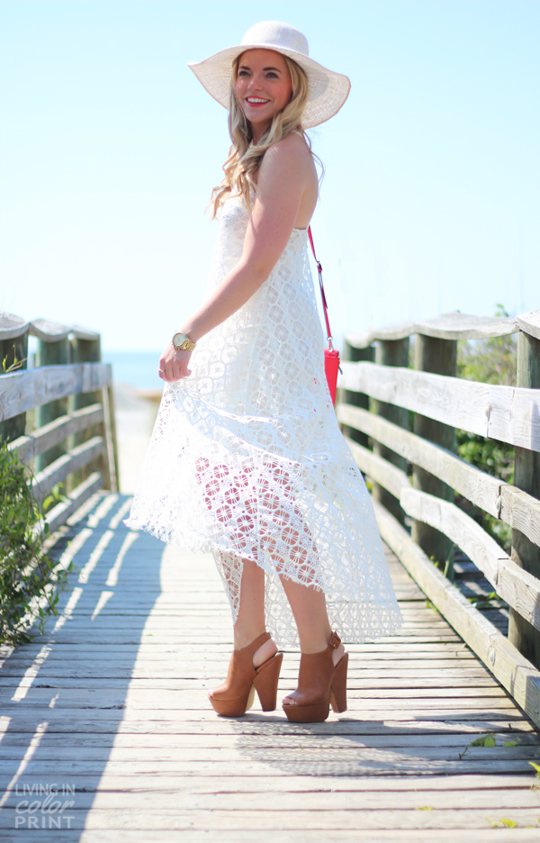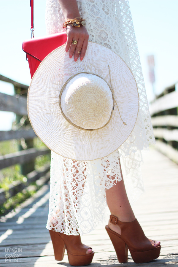 Happy Humpday everyone, I’ve got some exciting news to share with y’all today {one of those pinch me, I love my job, moments}! I am extremely honored to be chosen as one of the 10 Zappos VIP Bloggers for 2014! What does this mean? Well, each month I’ll be challenged by Zappos to create a look inspired by a specific theme or designer. This month is Memorial Day/Weekend; a holiday that, for me, represents a time of relaxation and family fun – perhaps a beach day, backyard bbq, boating, etc. So I opted for a fun crochet lace dress {so bohemian of me, right?? haha} and paired it with an oversized sunhat {beach perfection}, these killer cognac clogs that I can’t get enough of + a pop of color with this new Rebecca Minkoff crossbody.