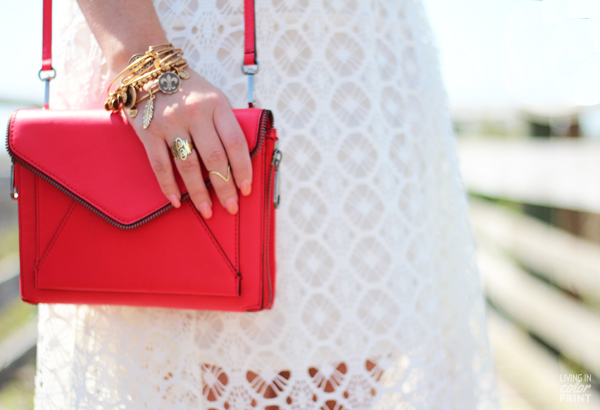 Crochet Lace Dress + Rebecca Minkoff Crossbody c/o Zappos | similar Steve Madden Heels | Pistil Sunhat c/o | Mirabella ‘Missed Opportunity’ Lips c/o | Alex + Ani Bracelet Stack c/o Jeweler’s Wife | Single Chevron Ring c/o | Monogram Ring c/o