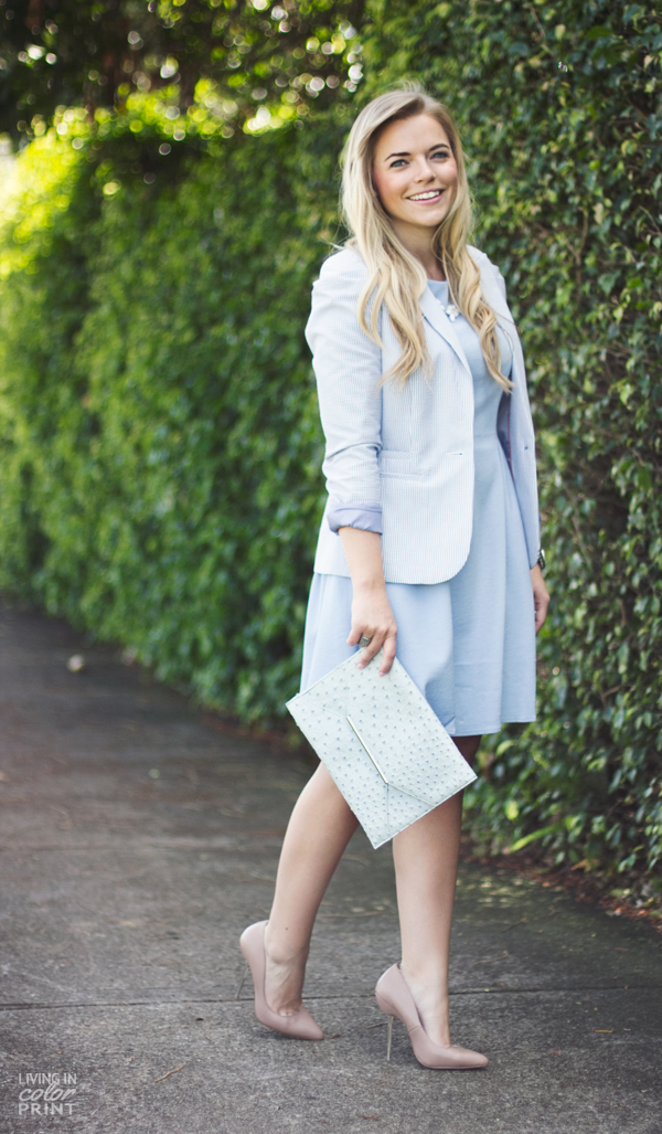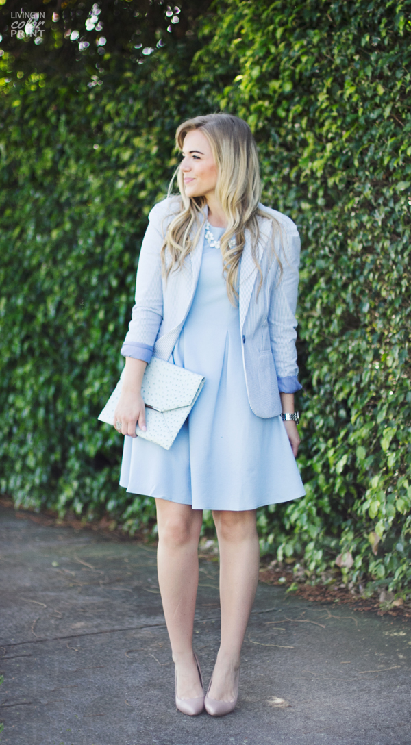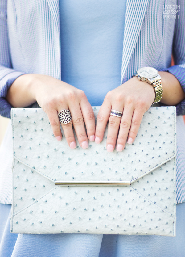 Loving this powder blue and the clutch. You look great in this color.