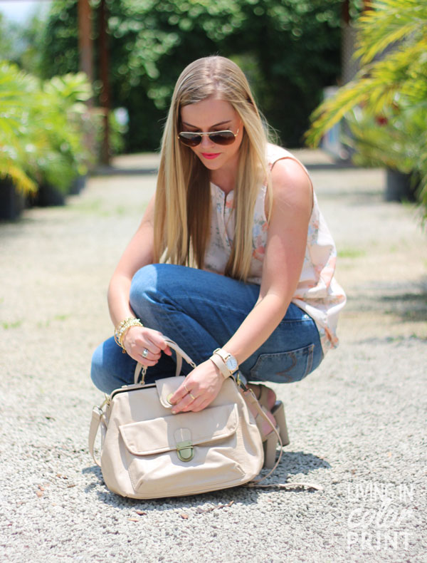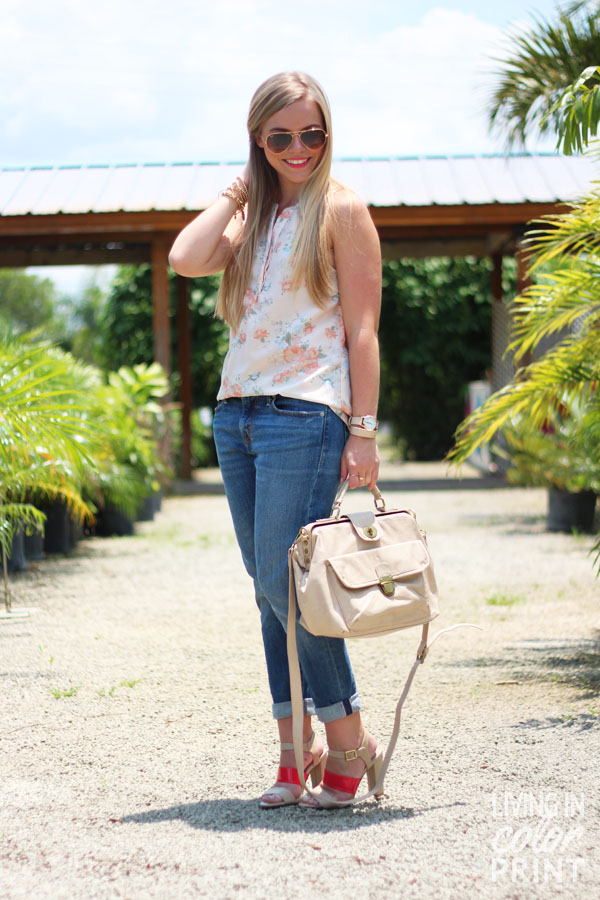 First, you look great in the floral top! it is definitely a great look for summer in Florida. Also, the bags are so cute! Thanks for doing this giveaway! It is so hard to choose a color, but I think I would have to choose the tan!