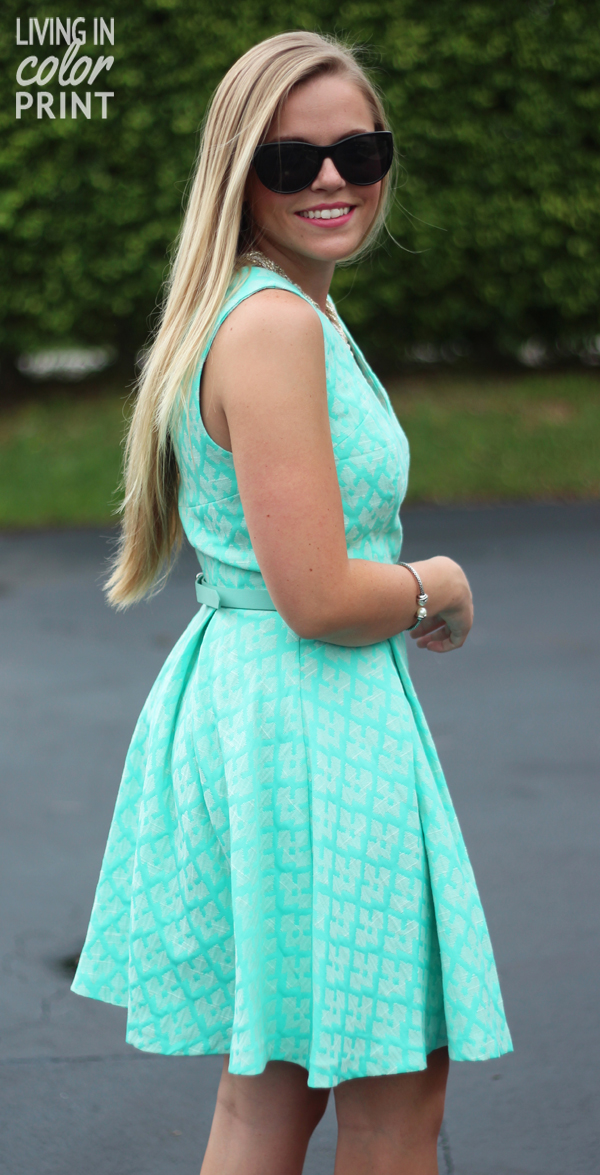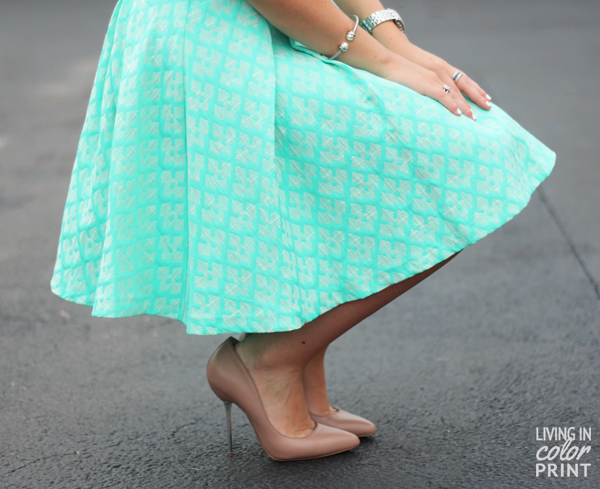 Today marks the 3rd part in my ‘Dress for Summer’ series collab with Warehouse/Oasis. In case you missed the first two check ’em out: Tribal // Floral. Throughout the series we’re bringing you a few of my favorite dress trends for the season, and here I am to showcase yet another: Jacquard. This type of fabric has been typically used in home decor/design elements for draperies and linens, however as of recent it’s made a major leap to the fashion world and I’m loving it. The combination of texture and pattern is insane. And of course you can’t go wrong with a little mint…plus jacquard?! Winner across the board in my mind!