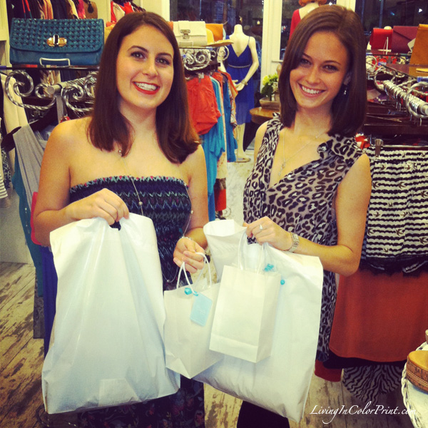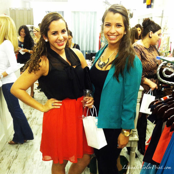 I was honored to host the debut of Etiquette Boutique‘s Sip & Style Soiree last night, alongside fellow South Florida blogger Erika Thomas of Blah Blah Blonde. The rain seems to be a re-accuring trend this time of year, but despite the on-again off-again showers fashion lovers from all around South Florida came out to indulge their shopping cravings. Guests enjoyed a variety of adorable ‘Lolli Cakes’ by The Cake Collection, La Marca Prosecco, and Make-up touchups by Mary Kay Cosmetics {consultant Jessica Portilla} – all while shopping the latest Spring/Summer trends.