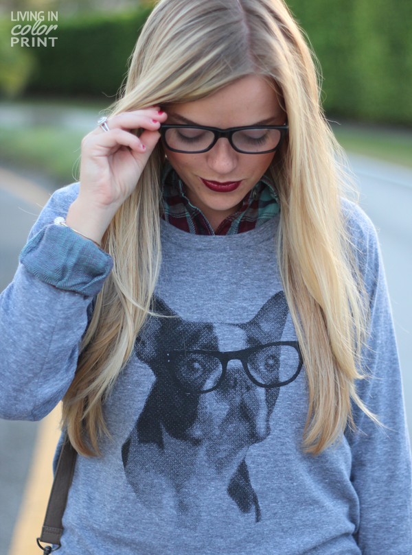 Sweater: c/o Skip ‘N Whistle | Plaid Shirt: c/o Paige Denim | Pants: c/o Paige Denim {similar & similar} | Wedges: c/o Dee Keller | Lips: c/o Tom Ford ‘bruised plum‘ | Glasses: c/o Benji Frank