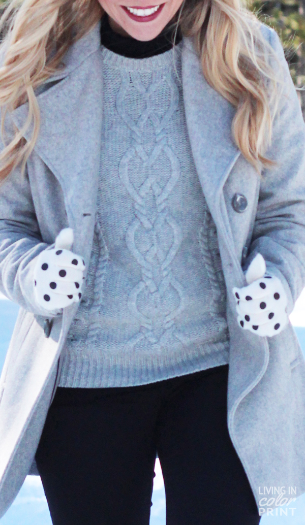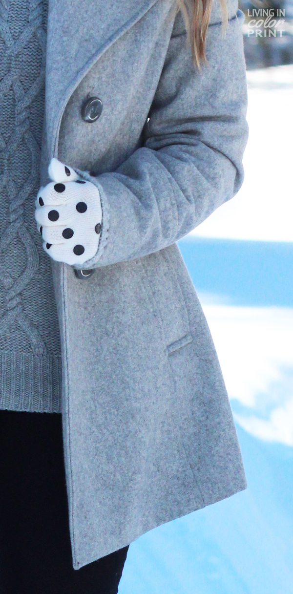 I am loving these pics, girl! You look so beautiful in grey — love it layered too! The polka dot gloves are the perfect touch — and I love that burgundy lip too! So pretty!