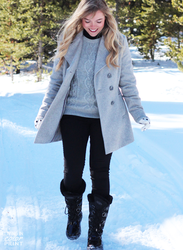 Don’t you just love a good play in the snow?! If you’re going to take on the cold weather it’s important to be properly geared up to stay warm. These Khombu boots rarely left my feet while in Colorado. They’re seriously the best snow shoes I’ve ever owned, plus they’re pretty cute with faux fur accents. They’re the perfect pairing with black denim or leggings.![]()