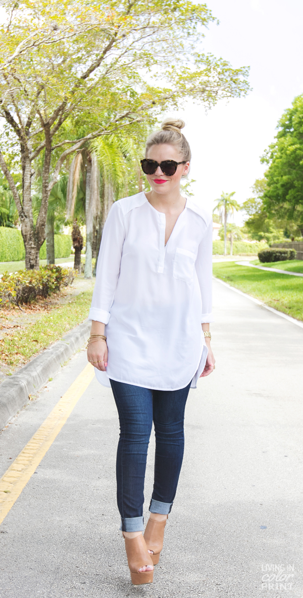 Love this simple look. You can’t go wrong with jeans and white blouse.