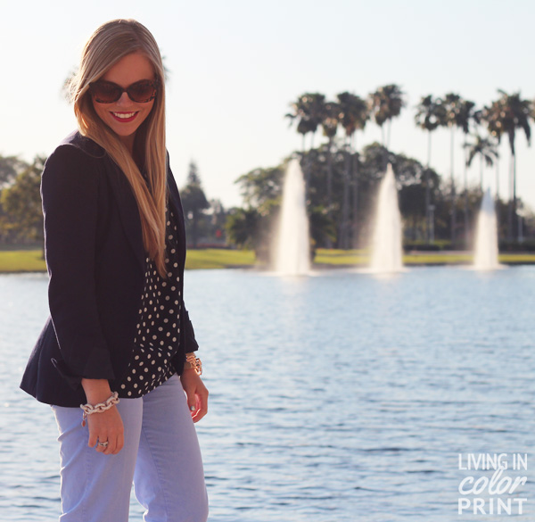 I just bought a pair of lavender jeans yesterday and I am so excited to wear them! The navy and polka dot is a good idea — thanks for the inspiration!