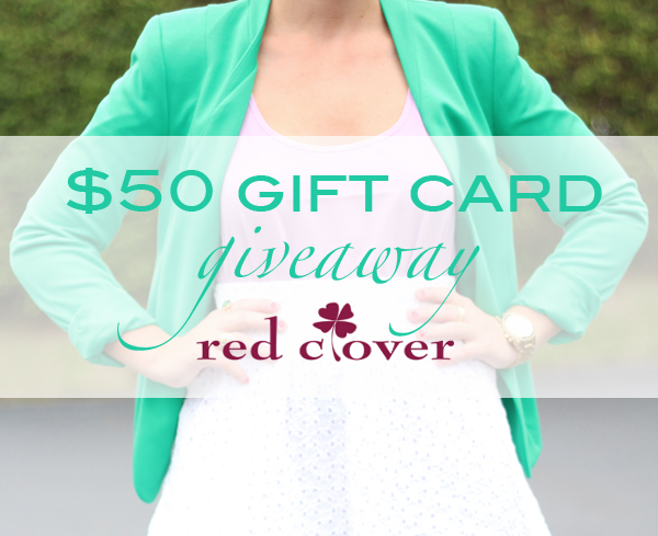 I’m excited to be hosting another giveaway for y’all here on LICP and even more excited it’s with the darling Red Clover boutique! RC has some adorable new pieces {like my lilac tank styled above} and they’re giving away a $50 certificate to one of YOU to shop away – get to it!