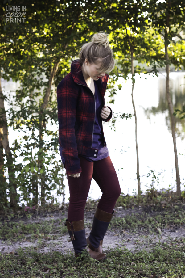 James Jeans Garnet Skinnies c/o | A&F Plaid Jacket c/o | Tommy Hilfiger Boots {old, similar & similar} | Urban Outfitters Tee {old, similar} | Stila ‘beso’ Lips