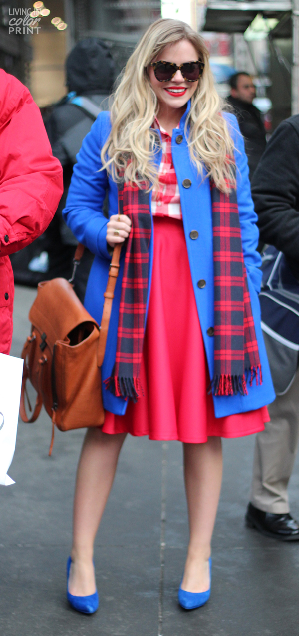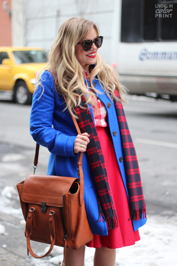 I wore this look to the Kate Spade NY presentation last week, kind of perfect for the brand right?! It’s got that fun, feminine feel to it. I loved the matchy matchy-ness of the bright red + cobalt, but also added a men’s scarf in a darker plaid to add some contrast and tie it all together {not to mention to keep warm}!![]()