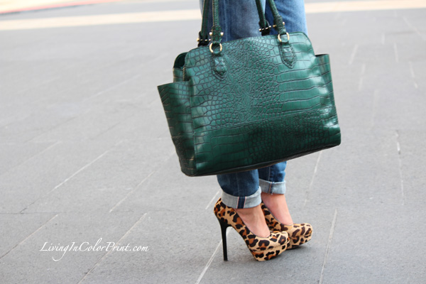 NYFW S/S 2013 is now in full swing and although I’m currently back home in FL, I’m thrilled I had the opportunity to be there again for my 4th season at Lincoln Center. Since this past week has been so hectic, I’ll continue to replay and update y’all on my outfits/shows I attended day by day. It was super hot the first few days in NYC, so pardon my excess use of buns during this trip. As I mentioned in my previous post HERE, I scored these uh-mazing boyfriend jeans at Levis during LuckyFABB Day 2. I clearly couldn’t wait to rock them, so I prepped a quick outfit switch and paired the slub jeans with a navy H&M blazer, basic white shirt, leopard pumps, and a new London Fog croc purse in hunter green. I’ve honestly never been a huge fan of hunter green, but I’m really digging it for fall this year. Within a week I bought a purse, blouse, and ring all in this luxurious hue…obsessed much?