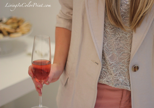 Skinnies: c/o OASIS // Blazer: c/o Karen Kane // Blouse: H&M {similar} // Pumps: G by Guess {identical} // Necklaces: ‘K’ initial c/o Miriam Merenfeld Jewelry, Stone via F21 // Rosé: c/o Jack Rogers