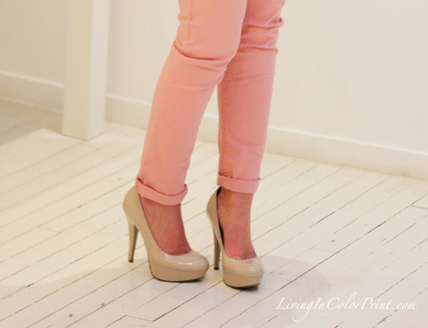 I love these pastel jeans and this lace top together. Such a pretty, classy look!