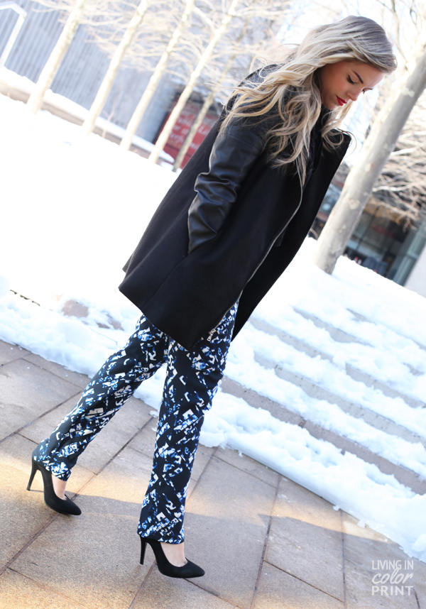 Happy Monday y’all! NYFW has been such a blast thus far: mild weather, champagne overload, amazing fashion, the list goes on and on. So here’s my first look! Doing a little pattern play with these fun printed trousers and faux leather.