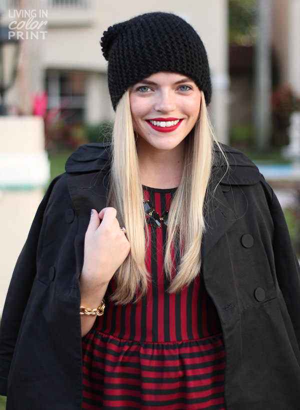 Boots: c/o DSW | Dress: F21 | Jacket: old, similar | Lips: Stila ‘fiery’ | Necklace c/o