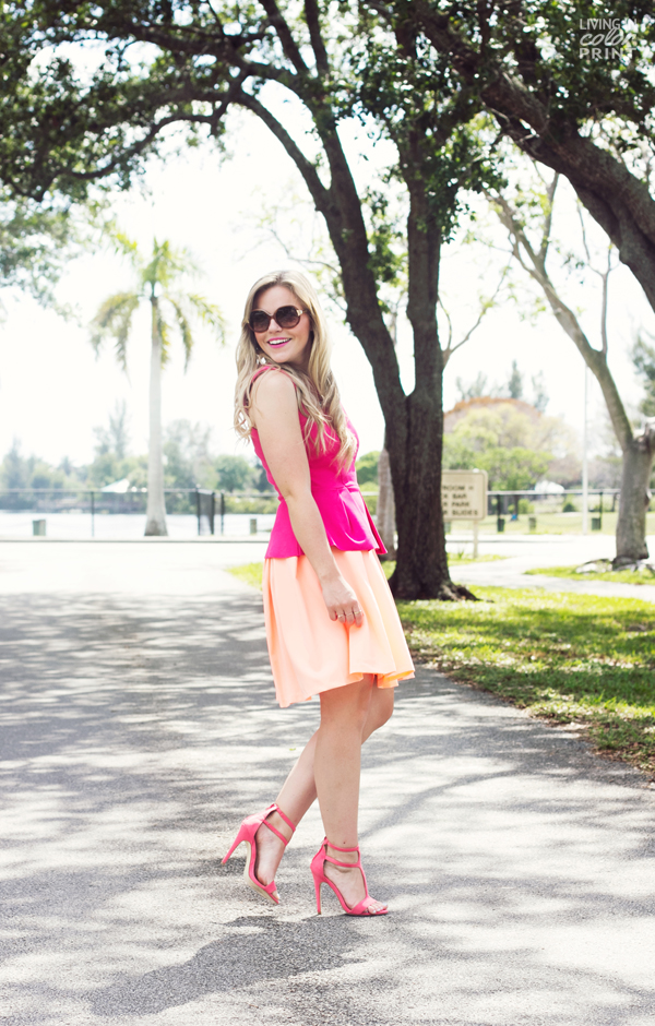 Y’all know I love to pair fun, bright colors for summer – so today I decided to experiment with Pink + Peach. This color palette is so fresh, I just love how the hues compliment one another. As an exciting side note: this look was actually featured on JustFab’s blog as well! I will be honest though, these particular heels are definitely not my favorite from the brand. A bit uncomfortable and hit my ankle at a weird place {as you may be able to see}. But, all in all – cute color/style for the price. I would totally recommend JustFab’s Amena style, which was recently released on their site – obsessed with the cobalt {naturally}. ![]()