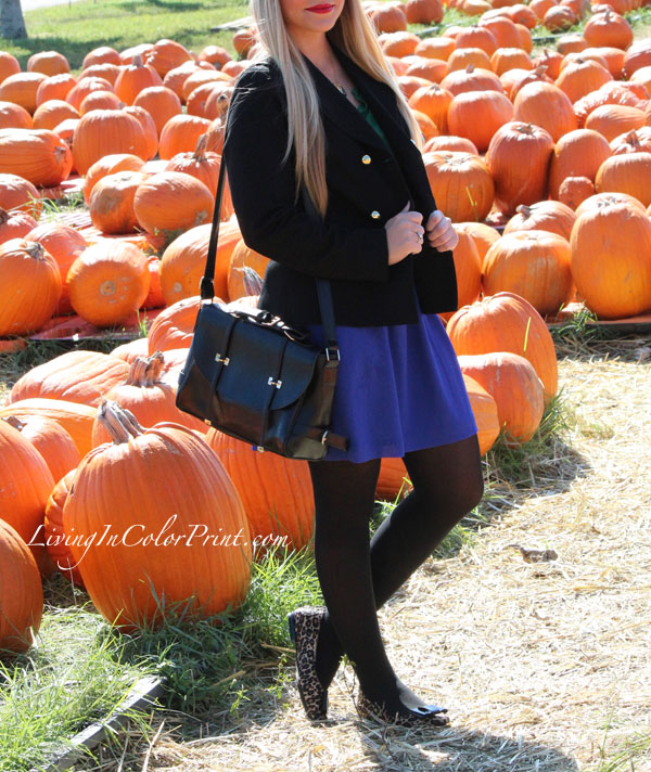 I paired this comfy, purple chiffon skirt with tights {fitting for the crisp weather} along with a simple green blouse and this amazing-ly perfect military inspired jacket from Alice & Trixie. I have a feeling this tailored number will be a fall/winter wardrobe favorite. Added a pop of print with my new Me Too leopard bow flats – you may remember when I got the beige ones HERE – they’re just so comfy I couldn’t resist getting a second pair when I saw them at Nordstrom Rack again.