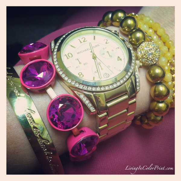 Arm candy: Kate Spade, Michael Kors watch, J Crew {same, different color}, c/o CRE, c/o MaLi Beads