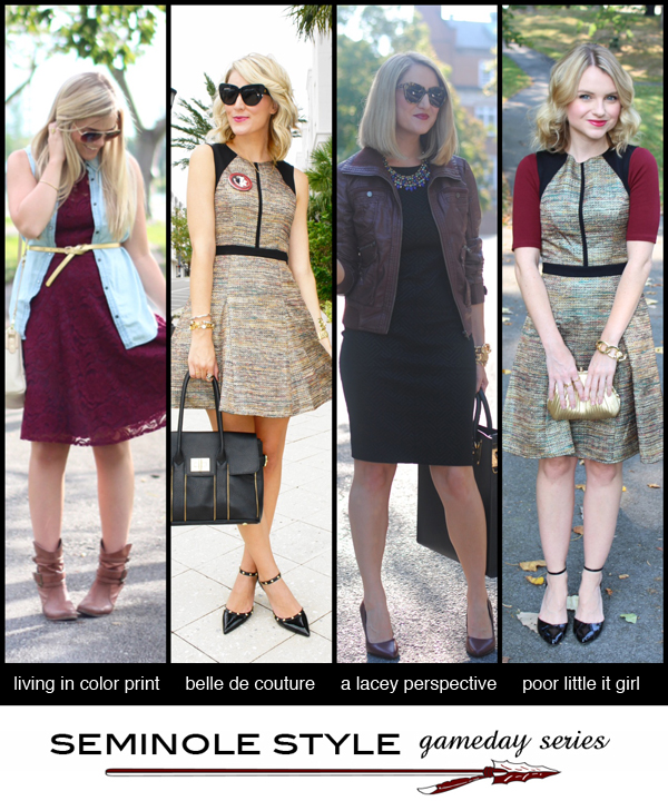 Here we are, the anticipated launch of this season’s Seminole Style series!!! I could not be more excited for collegiate football season to start! For those of you who may be new to my Florida State obsession {although, it’s hard to miss the ‘FSU’ part of my handle}, this is the second annual FSU gameday style series where myself, along with Jen of Belle de Couture, Lacey of A Lacey Perspective & Cathy of Poor Little It Girl showcase our love for our alma mater and garnet + gold. This season we’ve teamed up with some killer brands {can’t wait to share!} to inspire your tailgate attire and enforce the idea that football doesn’t always have to be all about graphic tees and cutoffs.