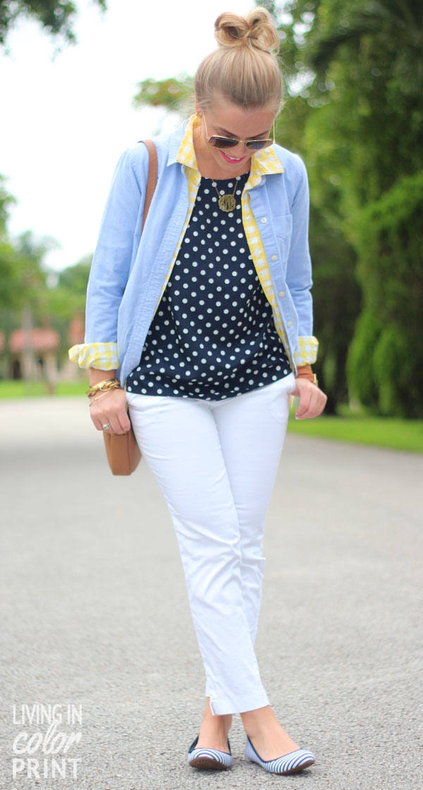 I love the gingham/polkadot/stripes all paired together– definitely a new england look!