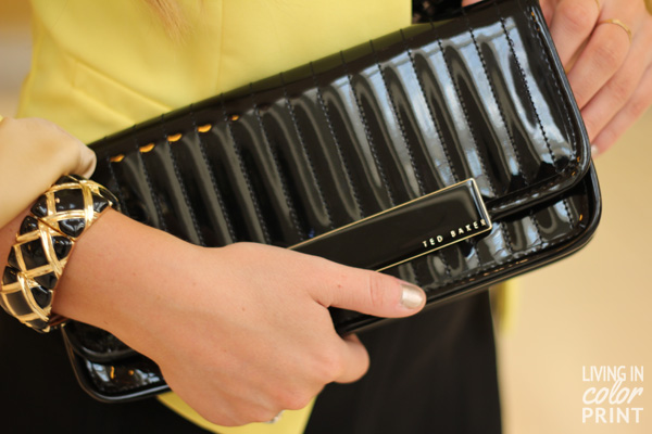 Last week I was asked to host ‘Teds 25 Years‘, celebrating TB’s 25th anniversary, at the Aventura Mall I Miami Ted Baker London storefront. I had such a fun time getting to know the sweet staff, sipping on Hendricks speciality cocktails, and jamming to DJ Wasabi’s beats – all the while strutting it in these incredible, unbelievable, uh-mazing heels. When I went to pick out an outfit for the event, I just knew I had to wear these babies. Whatever matched the black and gold hardware beauties was along for the ride {or so I told the sales associate}. I decided on this versatile black, skater skirt and paired the two with a patent clutch. Classic Ted Baker – shoes + clutch. Thanks so much for everyone who came out and celebrated!