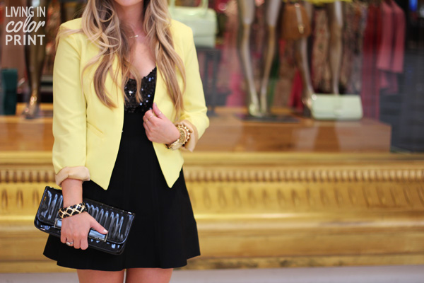 What I Wore: Skirt, Clutch & Shoes {ON SALE} c/o Ted Baker // Blazer: c/o Etiquette Boutique // Sequin Tank: F21 // Black & Gold Bracelet: Boutique