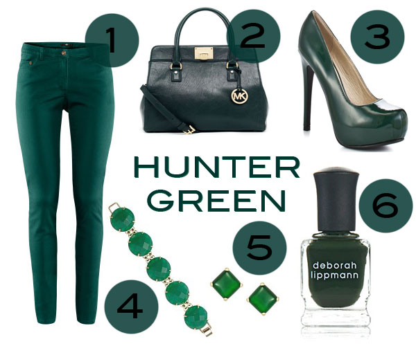 One color I can’t seem to keep my eyes {heck, and hands} off this season is HUNTER GREEN. Or ‘Pine’ if you prefer. Within the last few weeks I’ve purchased a handbag, ring, and blouse in this luscious hue {and am seriously contemplating pants…crop or skinny, hmmm or BOTH?!}. I’m usually more of a S/S color gal, but there’s something I love about this this rich looking hue fall style.